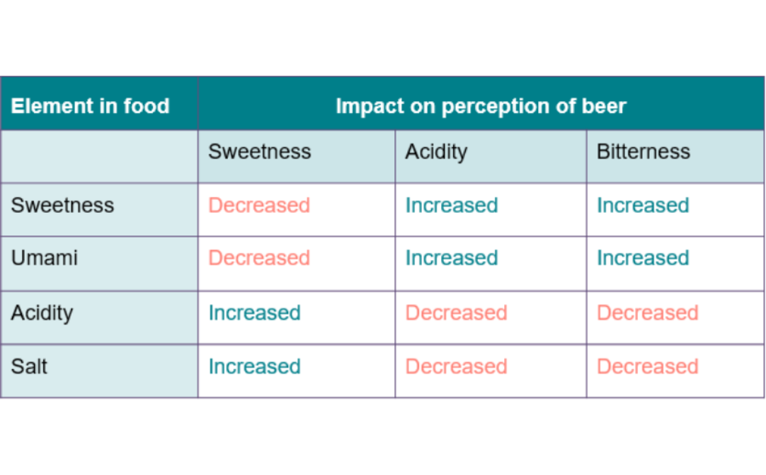 Pairing food and drink is all about how flavours meet. Here’s some examples of how different elements in food impact the flavour or perception of beer on the palate.