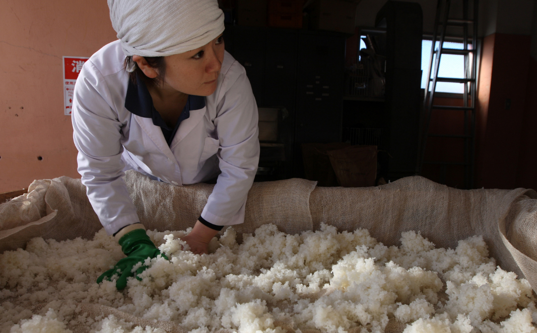 The first stage of production involves polishing the rice. The outer layers, which contain fats and proteins, are removed to allow easier access to the starchy core. The rice is then steamed and combined with koji, water and yeast, before being left to ferment for several weeks.