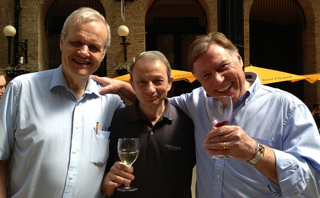 (Left to right) David Hunter with WSET educator Michael Buriak, and WSET School London's Resource Manager Joe Beddoe